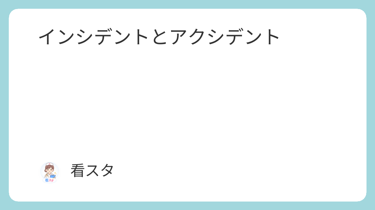 アクシデントとは、患者に何らかの被害や影響が生じた事案を指します。