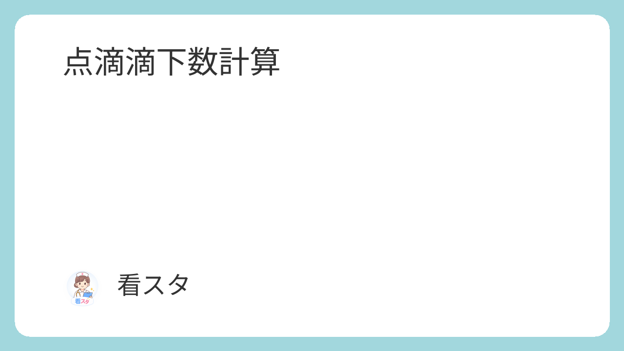 - 公式:滴下数(滴/分)= 総量(mL)× 係数(滴/mL)÷ 投与時間(分)